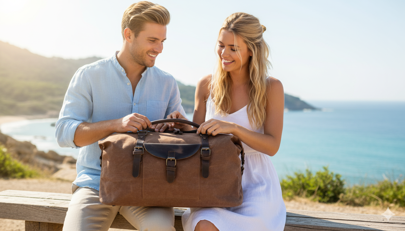 Waxed Canvas and Genuine Leather Duffel Bag